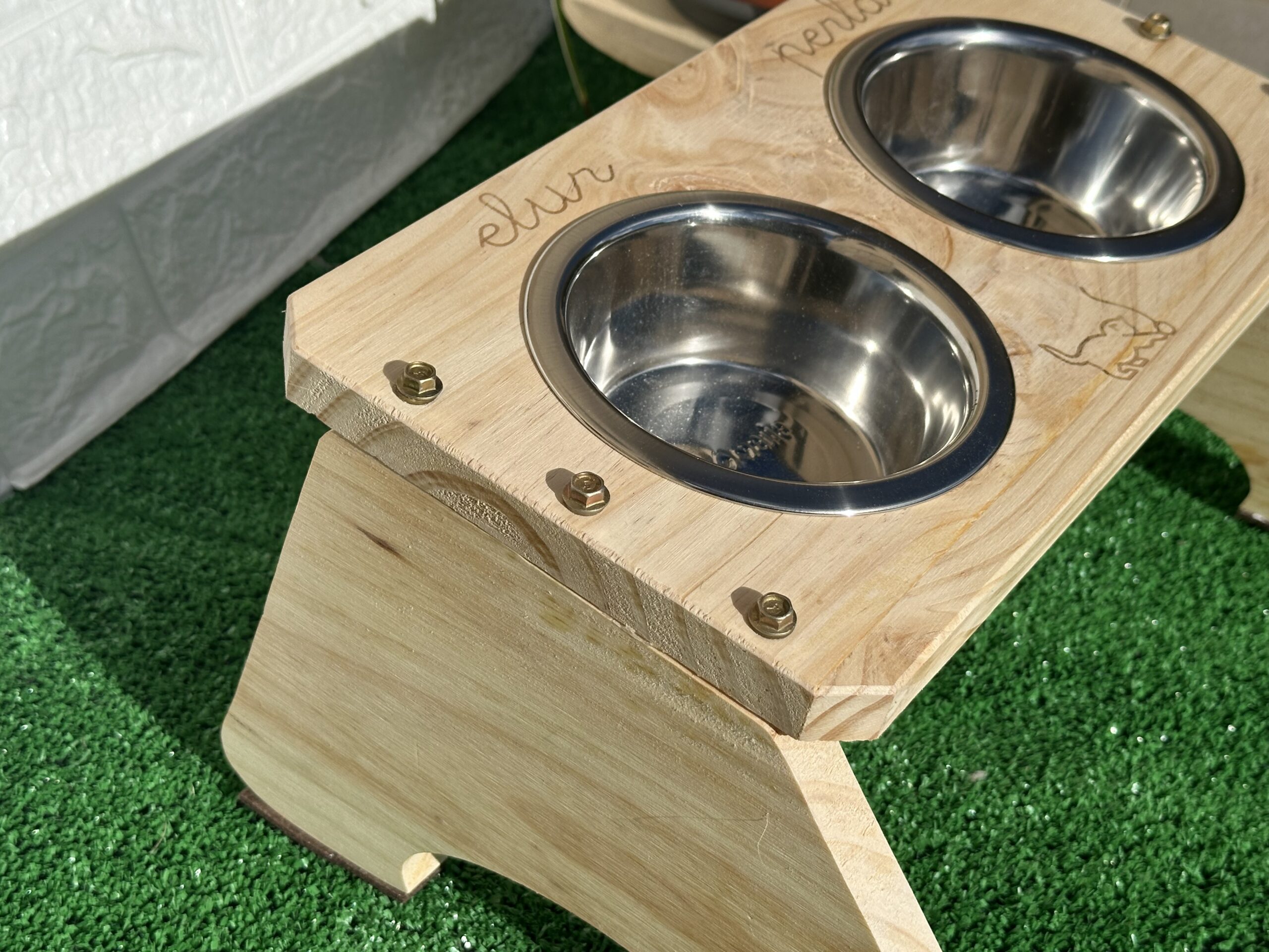 Presentamos nuestro Comedero Inclinado de Madera Personalizado para Mascotas, diseñado para cuidar su salud digestiva y hacerlo con elegancia.