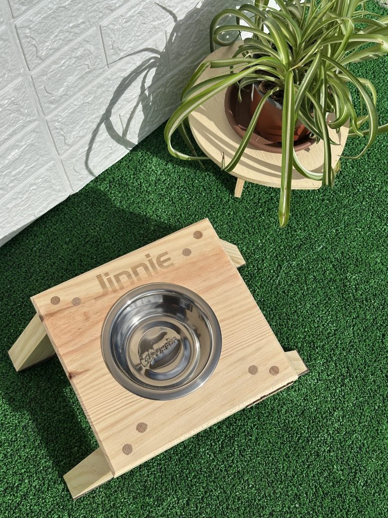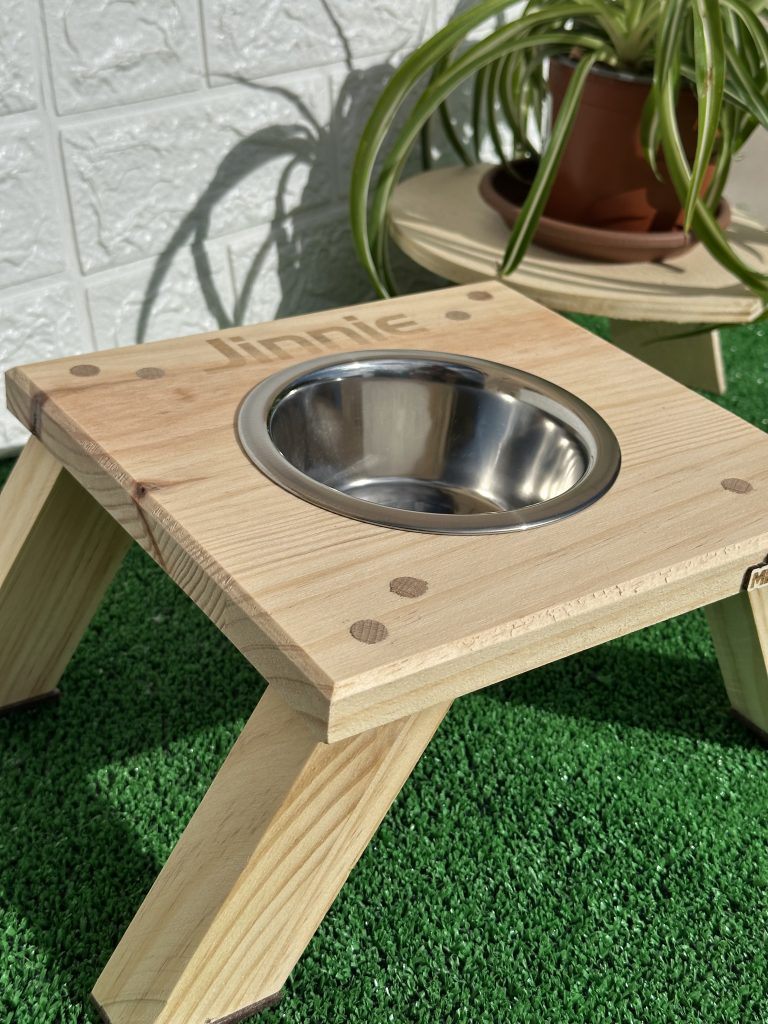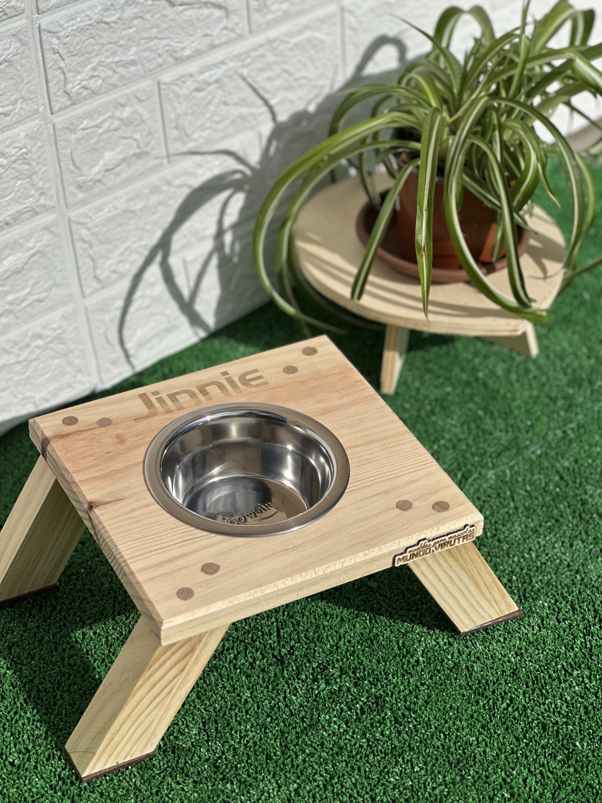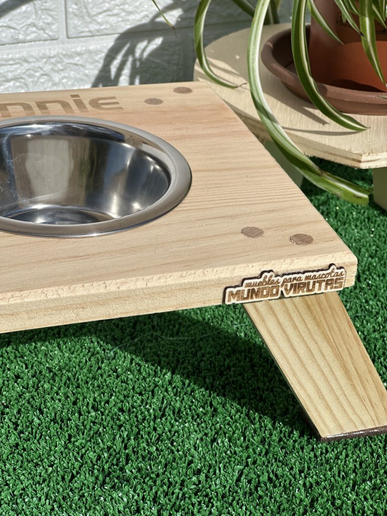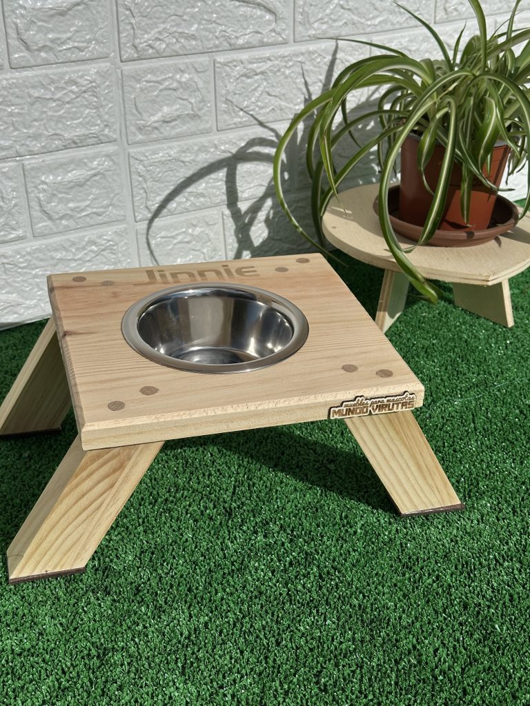 Fabricado en madera de pino macizo, con patas anguladas a 30° para aportar estabilidad, estilo y funcionalidad, este bebedero no solo resiste el uso diario, sino que se convierte en un detalle decorativo que enriquece tu espacio.